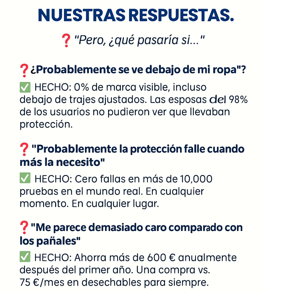 • Confiado por más de 63,000 clientes • Tallas disponibles hasta 6XL • Experto #1 en productos de incontinencia reutilizables y saludables • Certificado Oeko-Tex, libre de sustancias nocivas